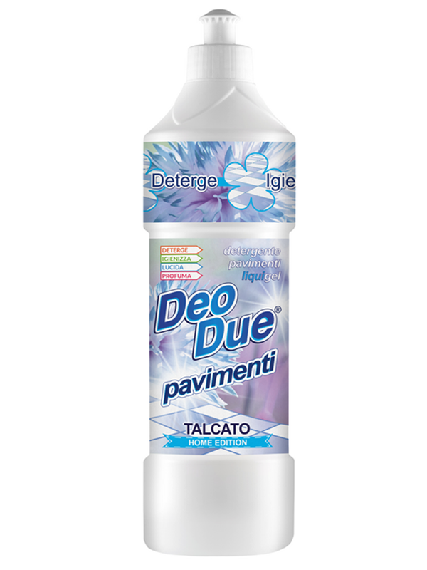 DEO DUE PAVIMENTI 750ML TALCATO di DEO. Detergente per pavimenti che pulisce a fondo e lascia un profumo fresco e duraturo. Consegna in 3-5 giorni lavorativi.