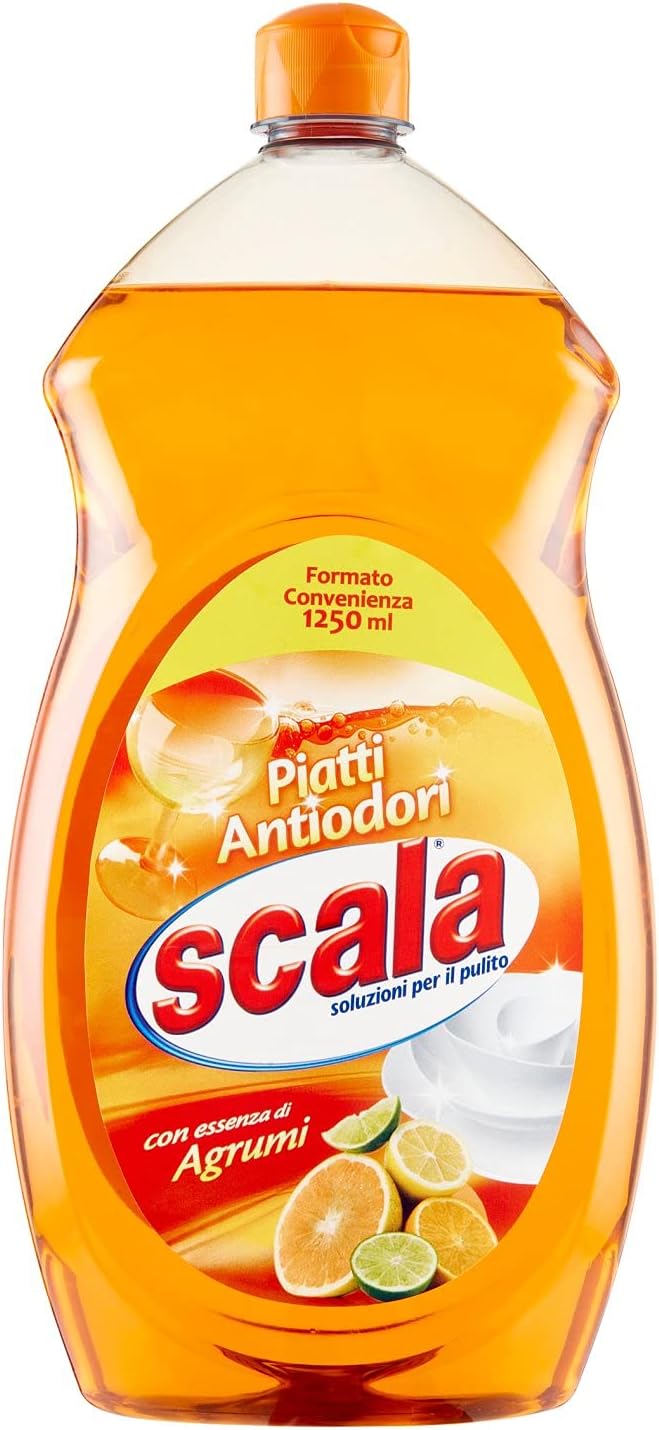 SCALA PIATTI 1250ML AGRUMI di SCALA. Detersivo per piatti che sgrasca e pulisce in profondità lasciando stoviglie brillanti. Consegna in 3-5 giorni lavorativi.